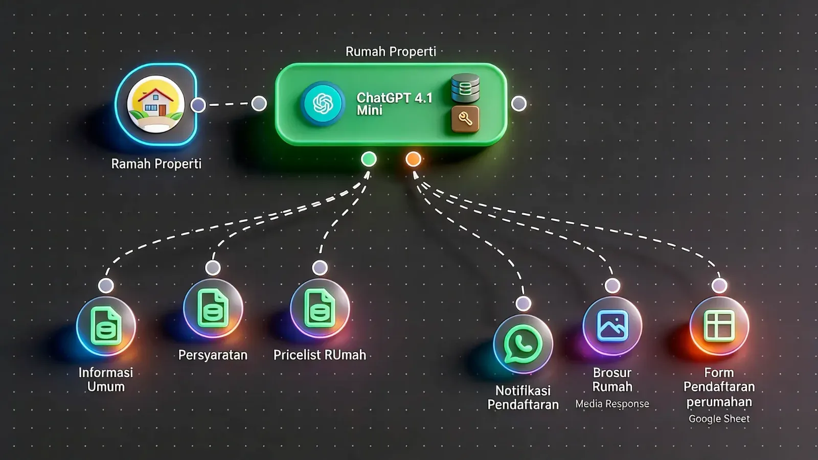 Bayangkan sebuah chatbot yang tidak hanya memberi tahu tentang ketersediaan produk, tetapi juga langsung memproses pesanan, membuat invoice, mengirimkan konfirmasi via WhatsApp, dan memperbarui database inventory—semuanya dalam satu percakapan!
